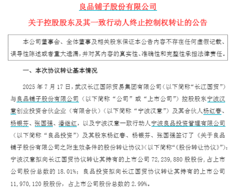 10月16日晚間,良品鋪?zhàn)影l(fā)布公告稱,近日收到控股股東寧波漢意創(chuàng)業(yè)投資合伙企業(yè)(有限合伙)及其一致行動(dòng)人寧波良品投資管理有限公司函告:截至《關(guān)于良品鋪?zhàn)庸煞萦邢薰局?/p>