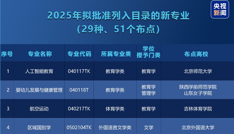 教育部同步更新發(fā)布《普通高等學(xué)校本科專(zhuān)業(yè)目錄(2025年)》,增列29種新專(zhuān)業(yè),納入2025年高考招生。新目錄包含93個(gè)專(zhuān)業(yè)類(lèi)、845種專(zhuān)業(yè),進(jìn)一步強(qiáng)化專(zhuān)業(yè)設(shè)置對(duì)國(guó)家戰(zhàn)略急需...