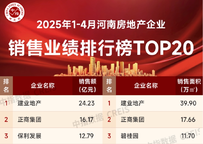 榜單顯示,建業(yè)集團(tuán)、正商集團(tuán)、保利發(fā)展、碧桂園、中海地產(chǎn)5家房企銷(xiāo)售額位列1~4月河南房地產(chǎn)企業(yè)銷(xiāo)售業(yè)績(jī)榜單前五;建業(yè)集團(tuán)、正商集團(tuán)、美盛集團(tuán)、常綠集團(tuán)、豫發(fā)...
