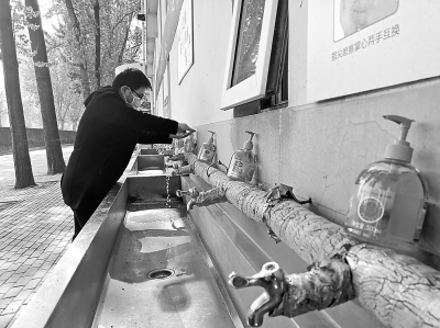 洛陽理工學(xué)院附屬中學(xué)每個水龍頭處都放有洗手液,學(xué)生就餐前,必須先洗手。