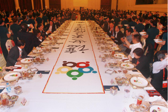 直播節(jié)目中,很多觀眾、聽眾發(fā)來語音微信,說自己是阿五黃河大鯉魚的忠實消費者,還說樊總是河南人的驕傲。 聽到這里,這位經(jīng)歷過各大場面的企業(yè)家笑的像個孩子一樣開心。 在樊勝武的生命中,有很多高光時刻。但說起最有成就感的一件事是在2014年,他邀請了全世界十幾個國家的600多位嘉賓來到河南,舉辦了一場《讓世界品味中原》的活動。