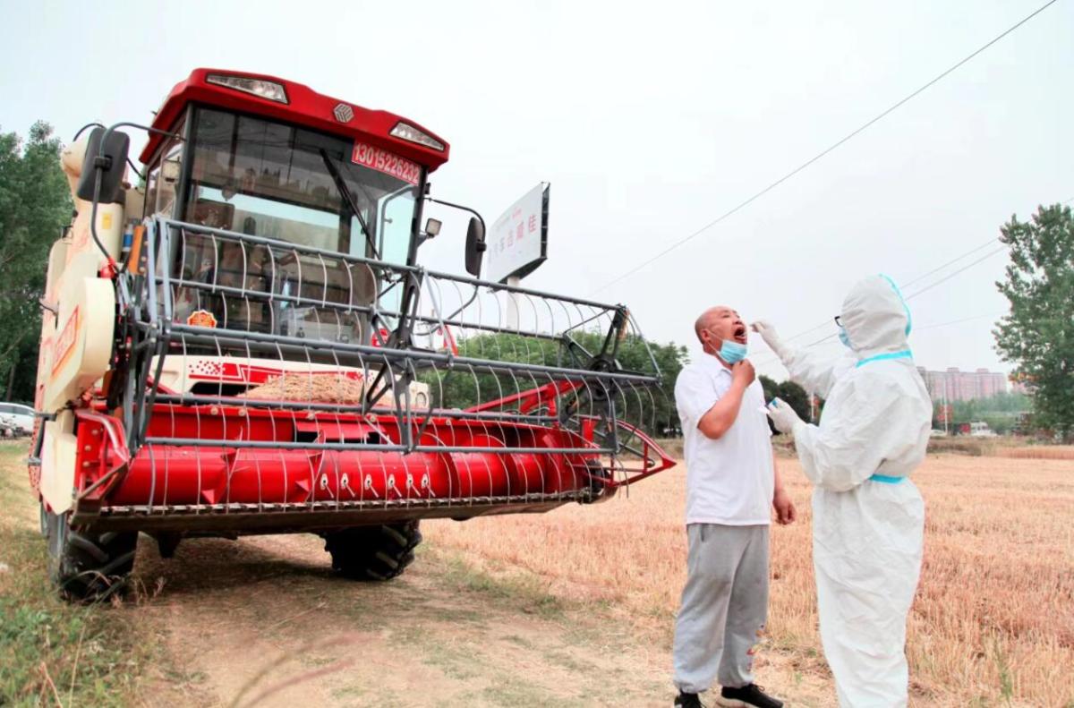 在該區(qū)蒲山鎮(zhèn)師楊莊村,剛從河北趕來的跨區(qū)農(nóng)機(jī)作業(yè)手鄭士衛(wèi)團(tuán)隊(duì)四人見到了該鎮(zhèn)負(fù)責(zé)采集核酸的醫(yī)務(wù)人員,通過動態(tài)聯(lián)絡(luò)、閉環(huán)管理、確保落地即采,在不耽誤收割作業(yè)的同時(shí)確保疫情防控安全。此外,該鎮(zhèn)為確保不誤農(nóng)時(shí),提前開展農(nóng)機(jī)需求摸排,聯(lián)系農(nóng)機(jī)企業(yè)到鎮(zhèn)開展夏收工作。據(jù)了解,該鎮(zhèn)現(xiàn)有6萬余畝土地待收割,全鎮(zhèn)外地農(nóng)機(jī)手現(xiàn)有60余人,每日安排醫(yī)護(hù)人員,分片區(qū)到農(nóng)機(jī)手駐地為其免費(fèi)采集核酸,做到一天一檢。