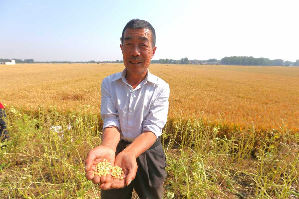 56歲的商水縣化河鄉(xiāng)化莊村農(nóng)民化澇,今年種了2.7畝小麥。5月21日上午,大河報•豫視頻記者見到他時,他正在地頭忙活。只見他揉開兩個麥穗,輕輕吹去麥糠,豐腴飽滿的麥粒頓時呈現(xiàn)在眼前。老化開心地說:“雖然今年天氣相對有些干旱,但是灌溉及時,初步估計畝產(chǎn)至少千斤以上,收成還是不錯的。”