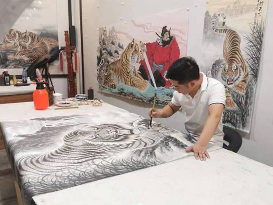 “俺經(jīng)常在一起切磋畫技,研究一些新式畫法,現(xiàn)在我們的繪畫作品很受市場認(rèn)可,作品不但在國內(nèi)銷量很好,同時也受到國際友人的贊譽。”身為“四大虎王”之一的王建民說起虎畫津津樂道。