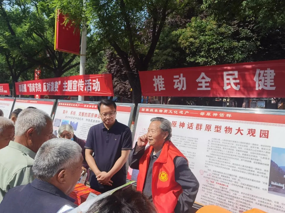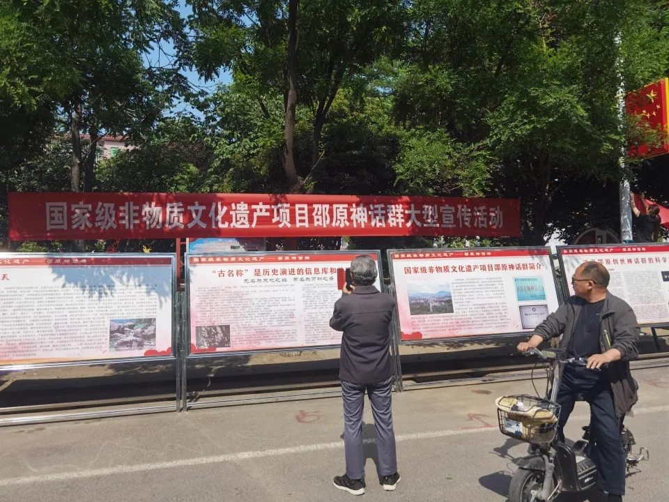 1.舉辦國家級非物質(zhì)文化遺產(chǎn)項(xiàng)目邵原神話群大型宣傳活動。圍繞邵原神話群項(xiàng)目介紹、故事介紹、原型物、保護(hù)成效、傳承活動等方面制作版面20余個,并邀請省級傳承人翟鋼炮現(xiàn)場義務(wù)講解,參觀人員達(dá)到300余人。