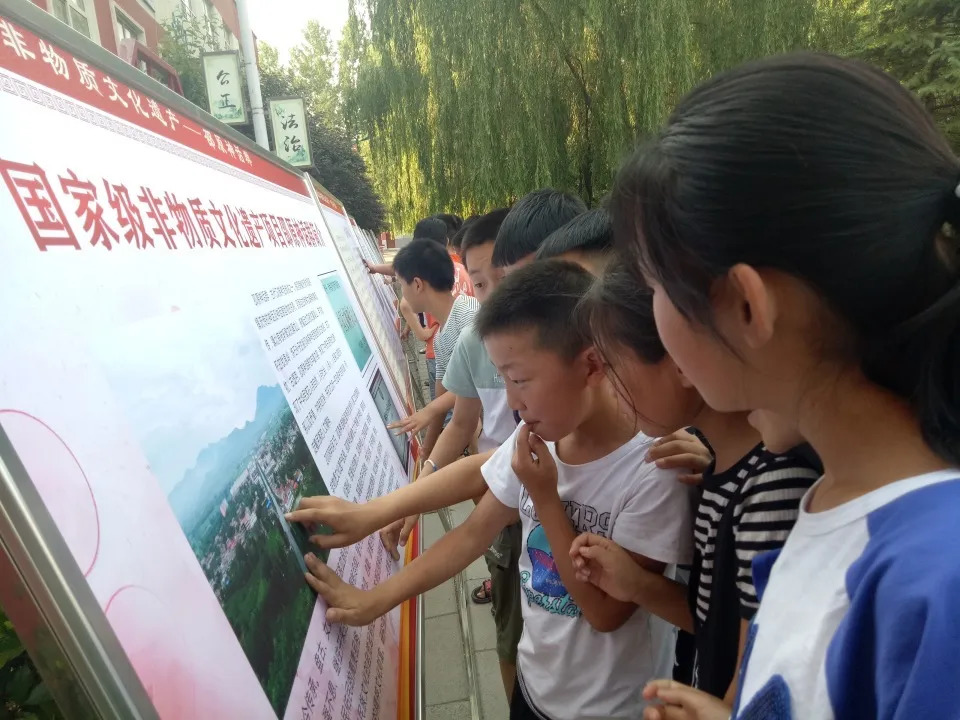 2.持續(xù)開展非遺進(jìn)校園活動。邀請邵原神話群省級傳承人翟鋼炮深入到實(shí)驗(yàn)小學(xué)開展非遺講座活動,活動現(xiàn)場設(shè)置非遺宣傳版面20個,懸掛橫幅2條,并設(shè)置了電子宣傳標(biāo)語,300余名小學(xué)生聆聽了講座。