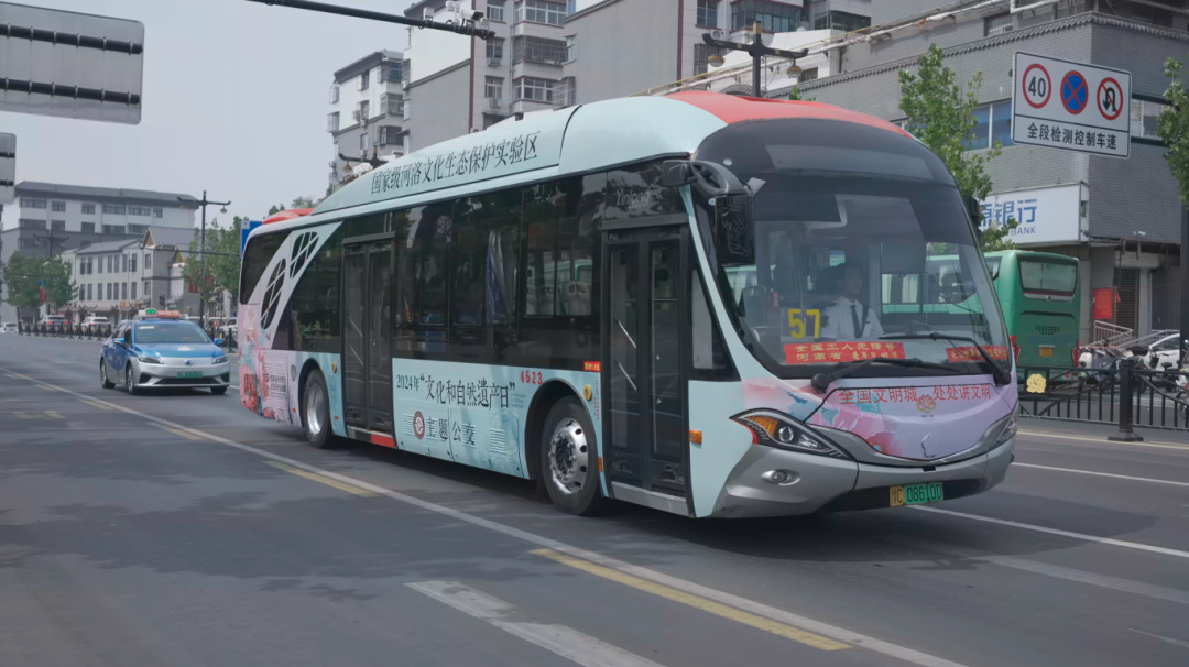 授牌儀式結(jié)束后,在洛邑古城南門廣場(chǎng),非遺主題公交正式上線。據(jù)了解,此次主題公交選取運(yùn)行線路長(zhǎng)、經(jīng)過景點(diǎn)多的9路、57路、81路,以公交車為載體,以河洛文化系統(tǒng)性建設(shè)成果為內(nèi)容,打造專屬于河洛非遺的“流動(dòng)展廳”。在主題公交車身外觀上,“國(guó)家級(jí)河洛文化生態(tài)保護(hù)實(shí)驗(yàn)區(qū)”“人民的非遺人民共享”等標(biāo)語(yǔ)十分醒目;公交內(nèi)部,廣告欄、椅背、拉環(huán)扶手等處,均有非遺知識(shí)科普,拉環(huán)扶手上一面展示姚黃、島錦等10個(gè)牡丹品種,另一面則是我市河洛非遺新青年的代表們,掃描二維碼,即可觀看青年們參與非遺保護(hù)傳承背后的故事。