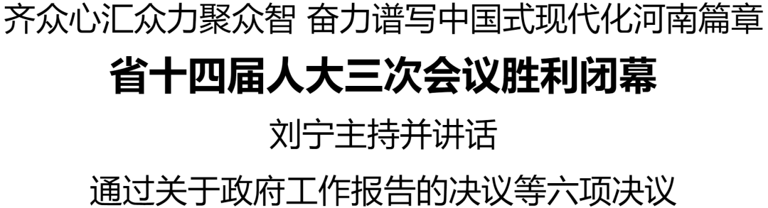 1月21日,河南省第十四屆人民代表大會(huì)第三次會(huì)議圓滿完成各項(xiàng)議程后在鄭州勝利閉幕。省委書記、省人大常委會(huì)主任劉寧主持會(huì)議并講話。