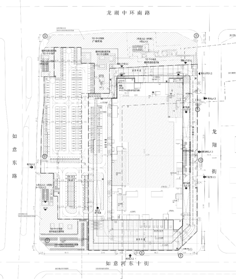 山姆會(huì)員商店項(xiàng)目位于如意東路東、如意河?xùn)|十街北,總占地約44.01畝,由商店和交通服務(wù)場站2個(gè)塊地構(gòu)成,其中:商店占地約32.26畝,總建筑面積約5.93萬平方米(地上建筑面積約2.49萬㎡,地下建筑面積約3.44萬平方米);地上建筑層數(shù)兩層,主要功能為賣場、配套用房及卸貨區(qū);地下兩層主要功能為車庫及設(shè)備用房。