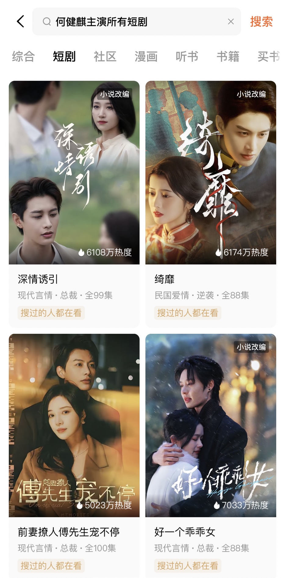 3月4日晚,短劇頂流何健麒被中國電視劇制作產(chǎn)業(yè)協(xié)會青年工作委員會(以下簡稱“青工委”)列入“微短劇劣跡演員”名單。大河報《看見》記者注意到,何健麒參演的作品仍能在